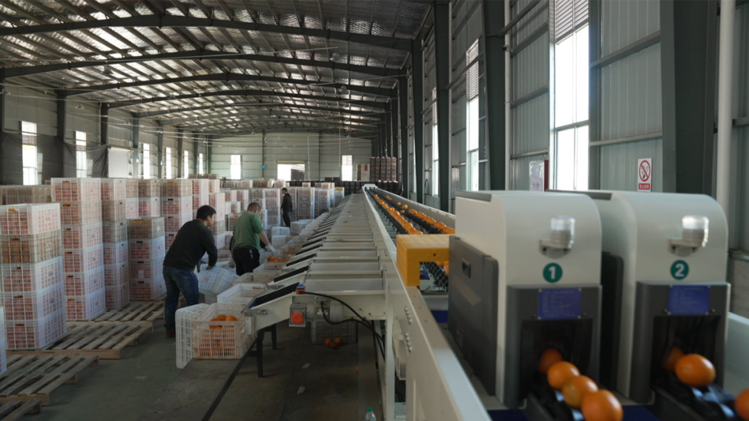 落地了全县最先进的脐橙自动化分选、包装系统,帮助当地脐橙在源头分级分选,自动包装发货,直连消费市场。据测算,与统货收购相比,数智化分选、分级后的果品,整体市场销售价格水平最高可提升40%。
